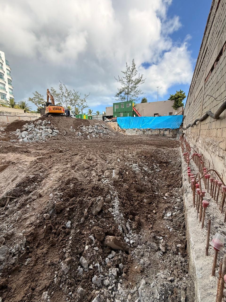Ao longo do mês de fevereiro, foi concluída a execução das contenções do empreendimento, etapa de grande importância para o avanço do cronograma da obra. Com a finalização dessa fase, foi possível iniciar os serviços de escavação mecânica. Paralelamente, seguem em andamento atividades complementares, como o arrasamento da parede diafragma